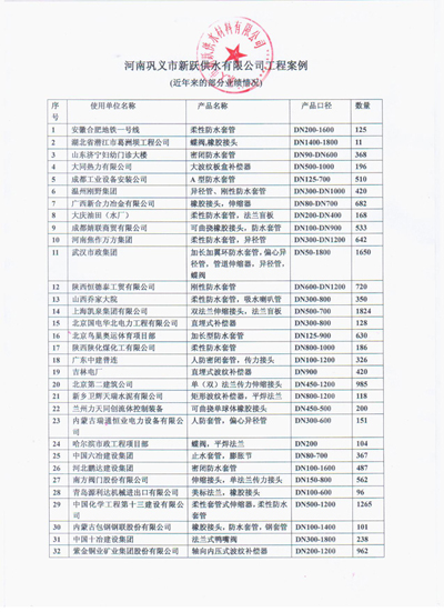 歡迎來到鞏義市新躍供水材料有限公司官方網站!您現在訪問的是:《公司部分業績》頁面,如需幫助請致電:13140066578 或 0371-64100988